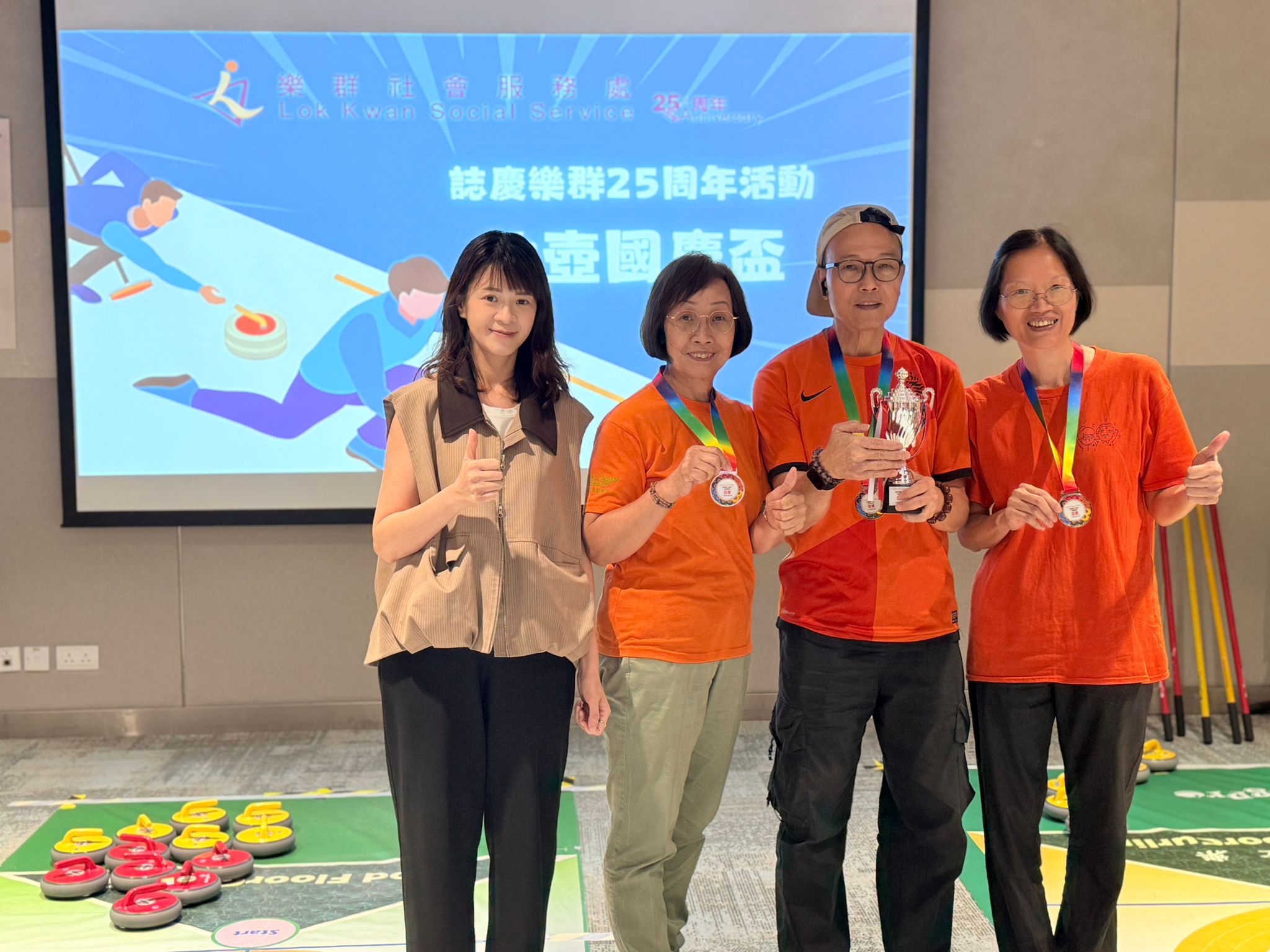 於2025年10月11日,本服務處不同服務中心的樂群之友參加了「地壺國慶杯」比賽,活動讓服務使用者認識及接觸地壺運動、加強服務使用者對本服務處的凝聚力及歸屬感、同時亦與服務使用者一同慶賀中華人民共和國成立76周年及分享本服務處成立25周年誌慶的喜悅。
